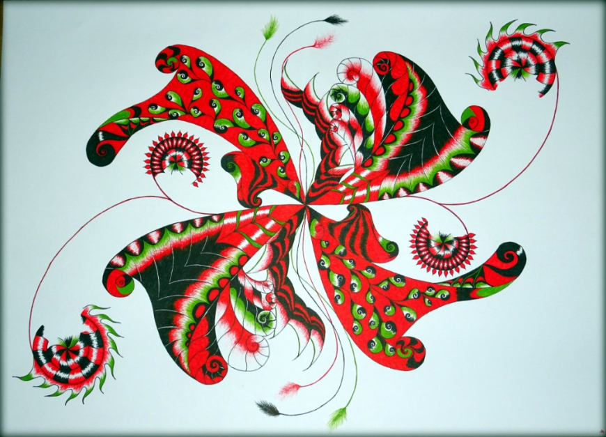 První díla byla kreslena centrofixem na papír a později si zamilovala malbu akrylem a plátno, které se věnuje do dnes.