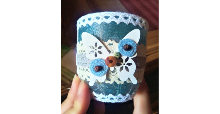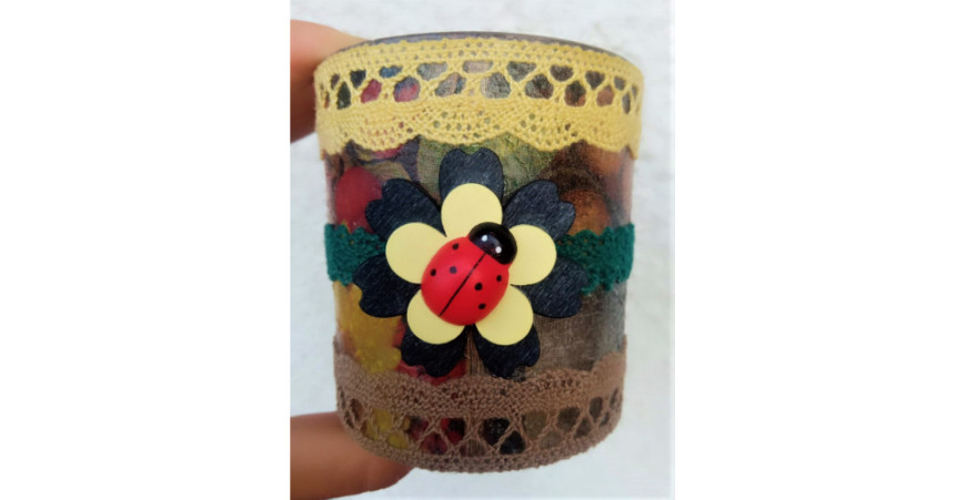Nápad "vyrábět" tyto zdobené skleněné svícínky vznikl, když se začalo hromadit nevyužité sklo různých tvarů z vypálených svíček ve skle. Škoda jej jen tak vyhodit, byť se sklo třídí a recykluje. Ale proč vynakládat tolik energie na jeho roztavení a novou výrobu!? A tak první kousek skla natřený bílým lepidlem typu Herkules za použití ubrouskové techniky, kdy se svícen lepením dozdobí přírodními stuhami, krajkami, provázky, dřevěnými doplňky ve tvaru motýlků, kytiček, berušek, srdíček, popřípadě hlemýždími ulitami, korálky, někdy zrnky kávy - fantazii se meze nekladou... Klade se důraz na rezonanci Srdce s Přírodou a v tomto Duchu se vybírá použitý motiv z ubrousků a celkové ladění v tónu barev tak, aby svícen působil příjemným dojmem nejen rozsvícený, ale i nerozsvícený. Bonusem, když v něm zapálíte vonnou čajovou svíčku, Vám bude obrys oněch "zdobítek", který oproti plamínku krásně zvnějšku vynikne. Naše svícínky vznikají ze Srdce v Krušných horách v zaniklé obci Luhy u Horní Blatné, a to v jedné malé chaloupce uprostřed skvostných lesů a luk, jenž nám jsou největší inspirací. Děkujeme Matce Přírodě, že nás tolik inspiruje pro Vaši i naši radost❣️