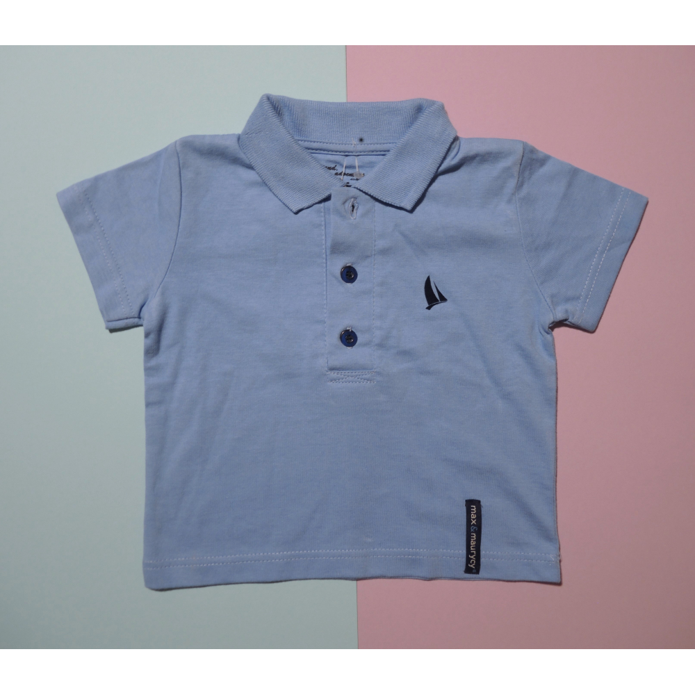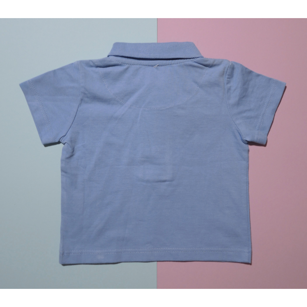 Chlapecké modré polo-tričko velikosti 80, vyrobené ze 100% bavlny.