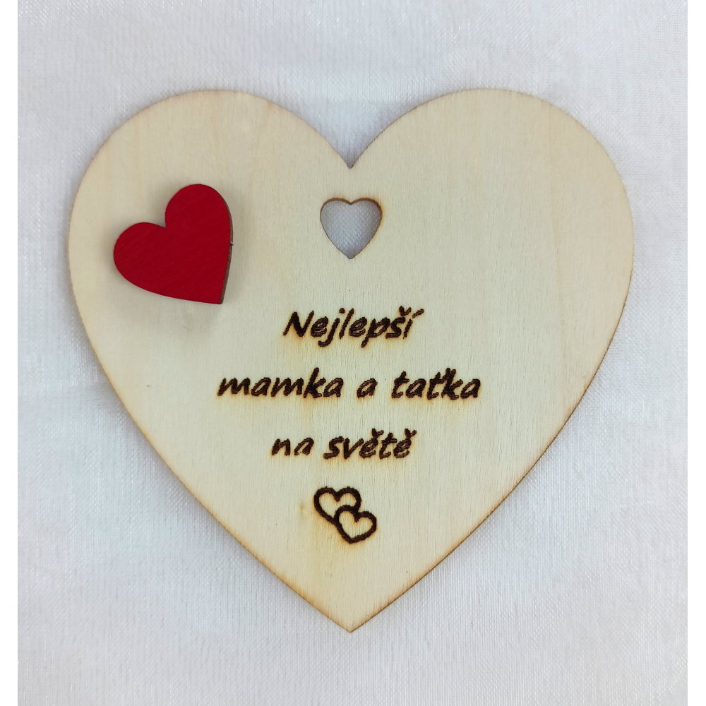 Dřevěné srdce s vypáleným motivem. Vzadu magnety a také poutko z mašle.