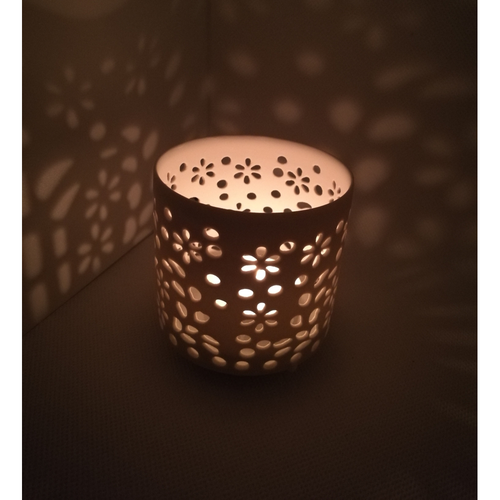 Porcelánový svícen s mnoha ozdobnými průřezy podpoří útulnou atmosféru doma i při venkovním posezení.