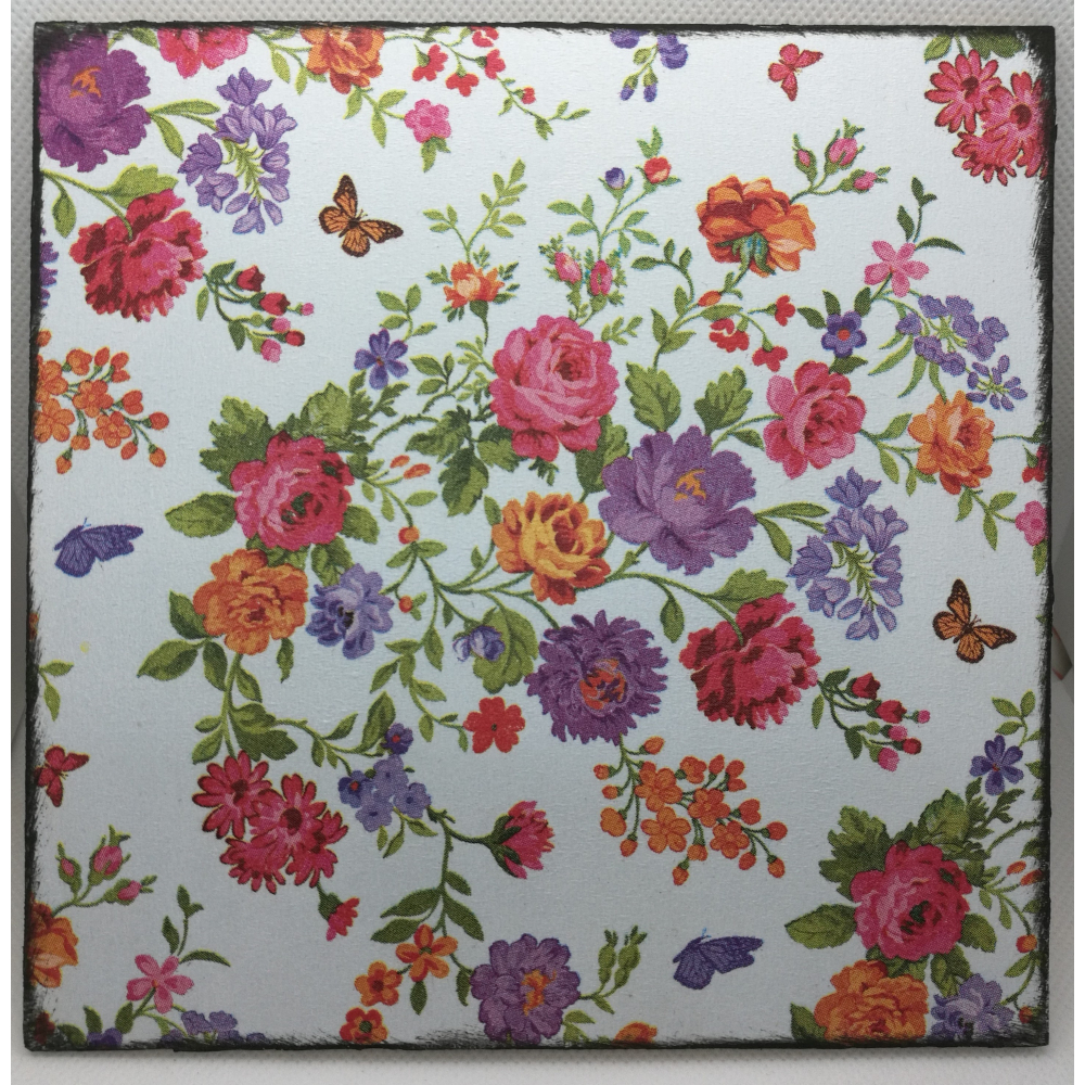Decoupage obrázky na sololitové destičce 16x16 cm s háčkem na pověšení.