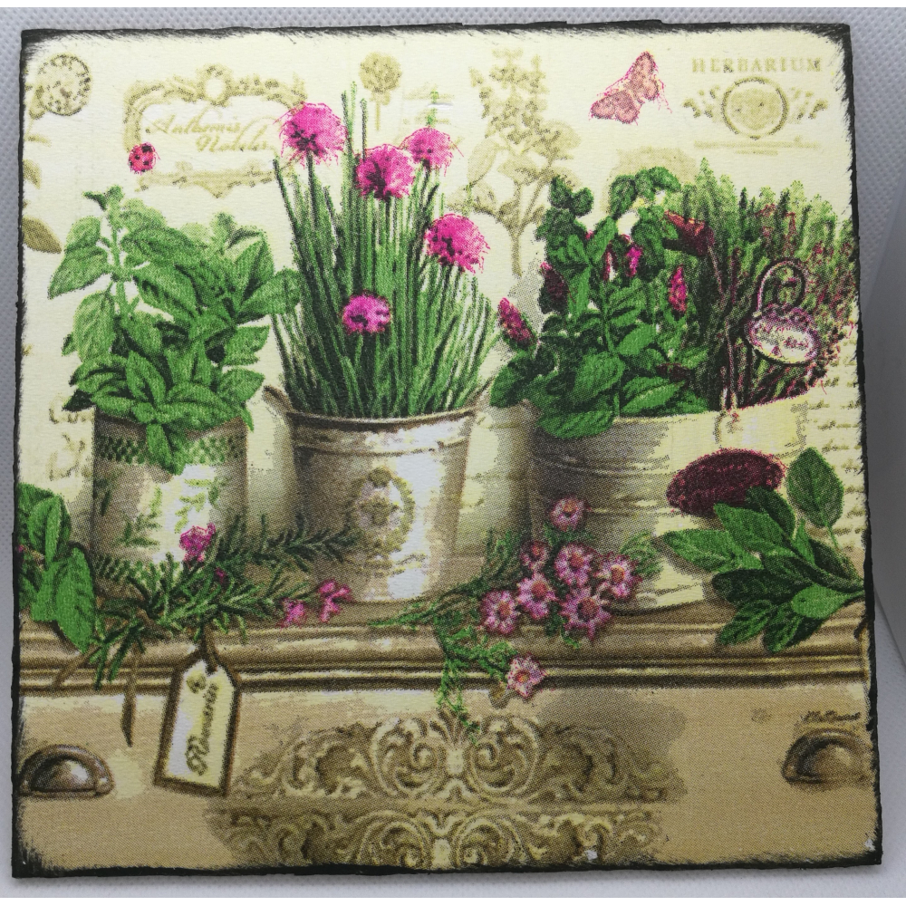 Decoupage obrázky na sololitové destičce 16x16 cm s háčkem na pověšení.