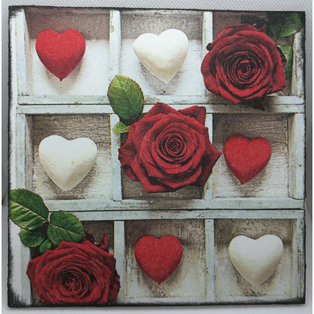 Decoupage obrázky na sololitové destičce 16x16 cm s háčkem na pověšení.
