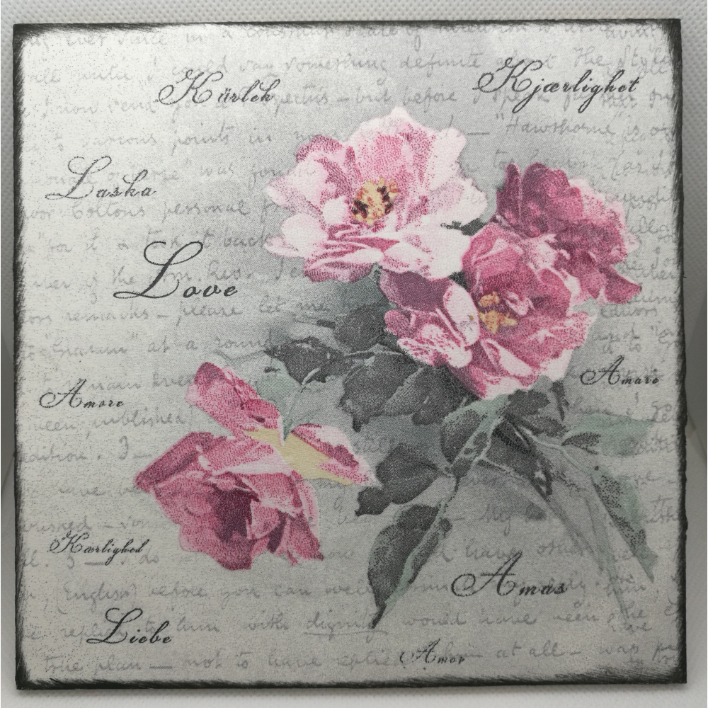 Decoupage obrázky na sololitové destičce 16x16 cm s háčkem na pověšení.