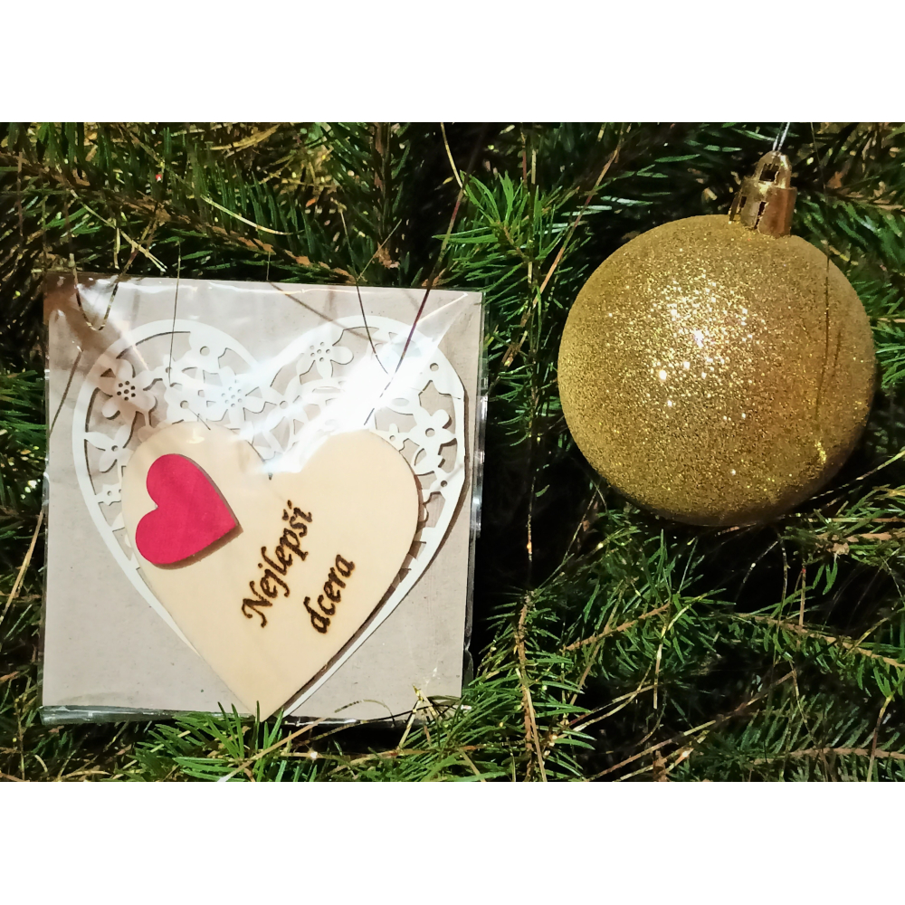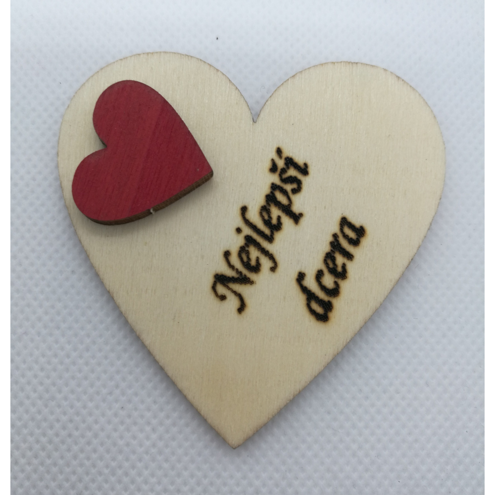 Srdce s věnováním z dřevěné překližky, 6x6 cm, vzadu s magnetem