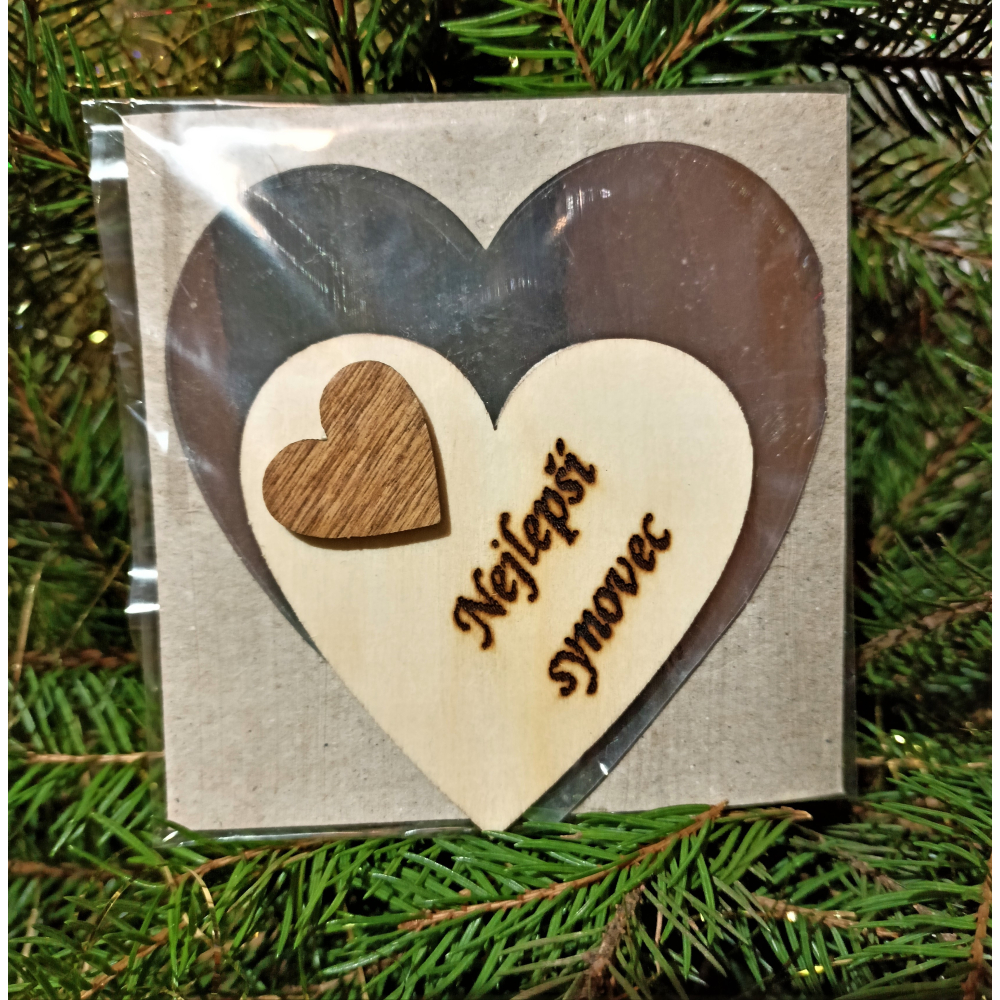 Srdce s věnováním z dřevěné překližky, 6x6 cm, vzadu s magnetem