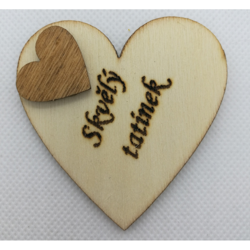 Srdce s věnováním z dřevěné překližky, 6x6 cm, vzadu s magnetem, dozdobeno srdcem širokém 2 cm. Text gravírován laserem. Umístění textu se může velmi mírně lišit, poloha srdce je nastavována ručně. Pokud není skladem, je možno do tří dnů vyrobit. Pro vlastní text přejděte v horním menu na Váš vlastní design.