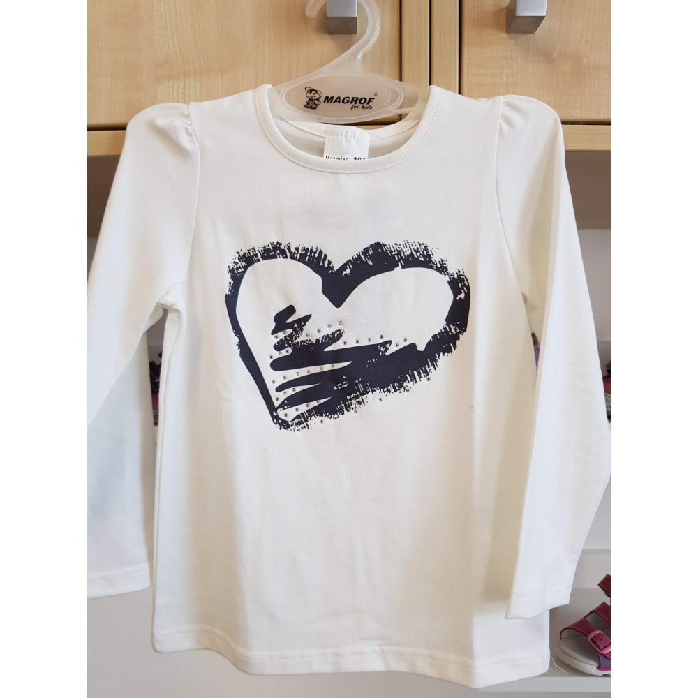 Bílé bavlněněné tričko s potiskem srdce.