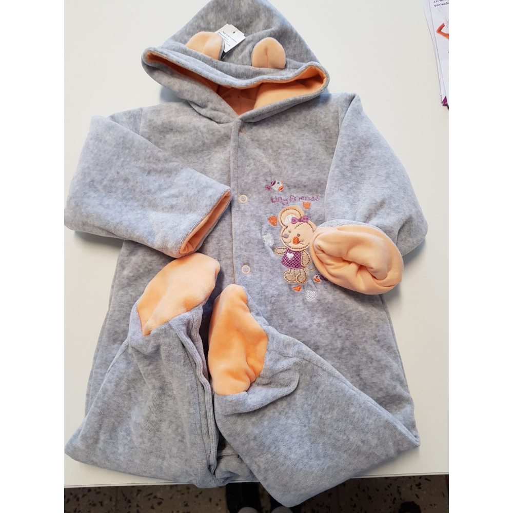 Dvouvrstvý overal s kapucí / Šedá s oranžovou