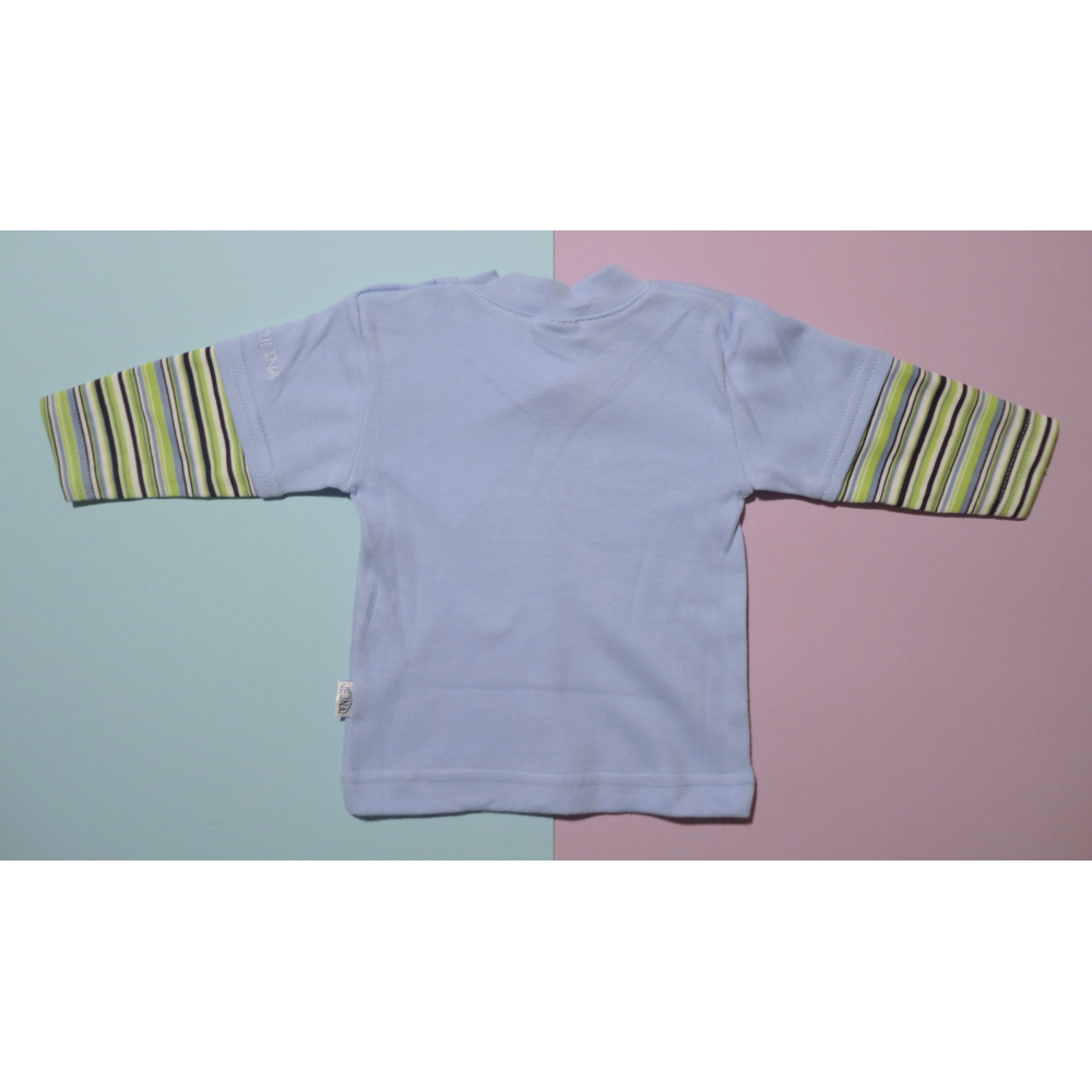 Modré tričko s dlouhým rukávem o velikosti 80 vyrobené ze 100% bavlny v České republice.
