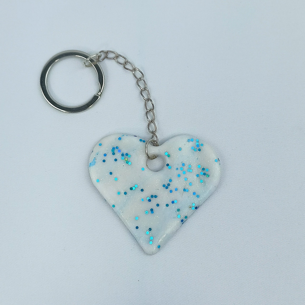 Zkrátka, přívěšek na klíče ve tvaru bílého srdce s modrou třpytkou není jen prostým předmětem. Je to svědectví řemeslné zručnosti, umělecké vize a lásky k detailu, které spolu vytvářejí malý kousek radosti, který můžete nosit s sebou každý den.