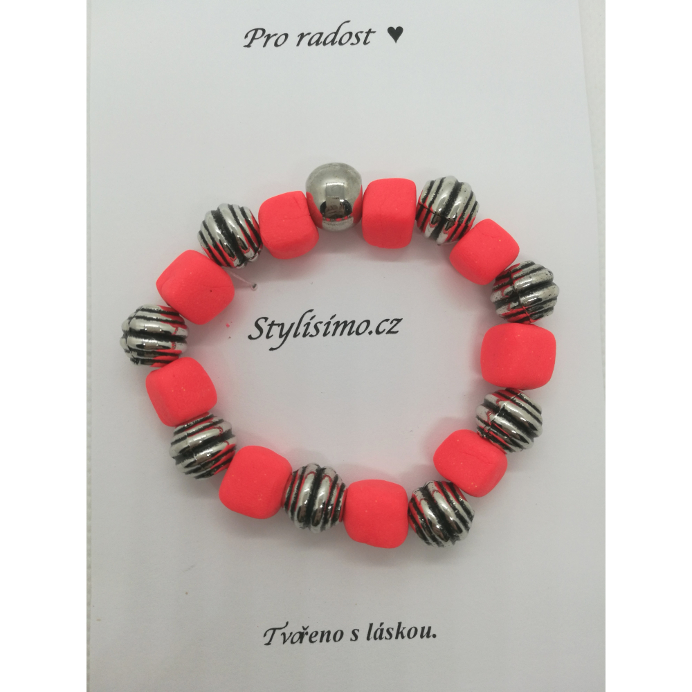 Náramek z fimo korálků "Pro radost" je opravdovým unikátem, který osloví každého, kdo má rád výrazné a originální doplňky. Tento náramek je dokonalým spojením barev, tvarů a radosti, které v sobě nese. Každý korálek je pečlivě vyroben z fimo hmoty a díky tomu je každý náramek zcela jedinečný a nenajdete dva úplně stejné kousky.