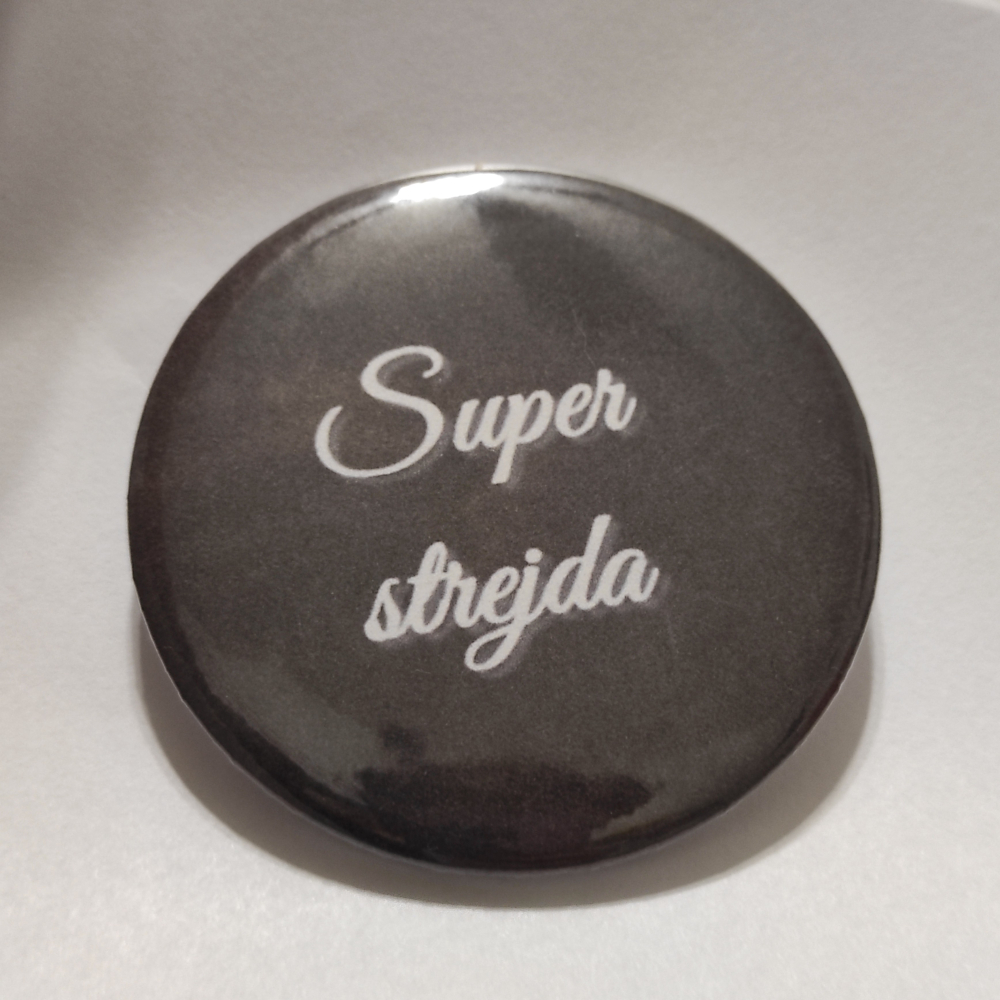 Placka se spínacím špendlíkem, velikosti 58 mm.