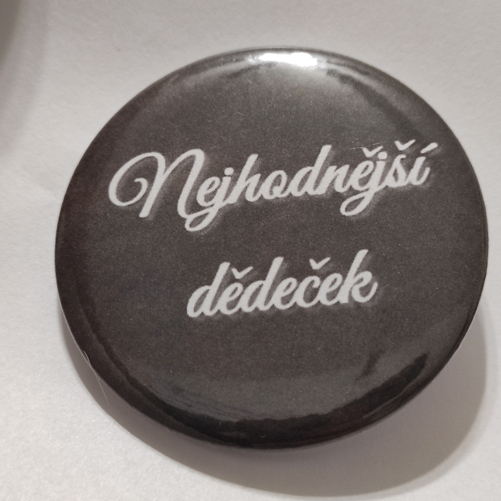 Placka se spínacím špendlíkem, velikosti 58 mm.