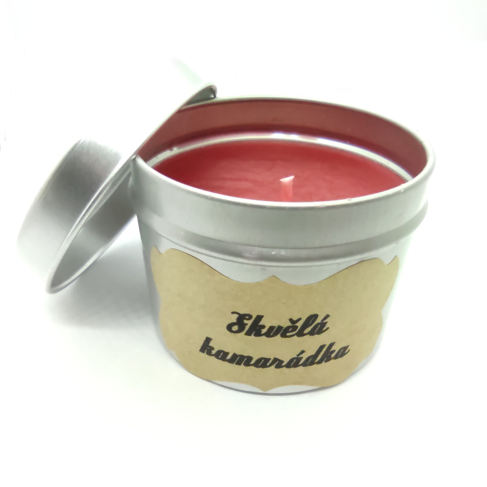 Handmade vonná svíčka v plechovce s víkem a věnováním.