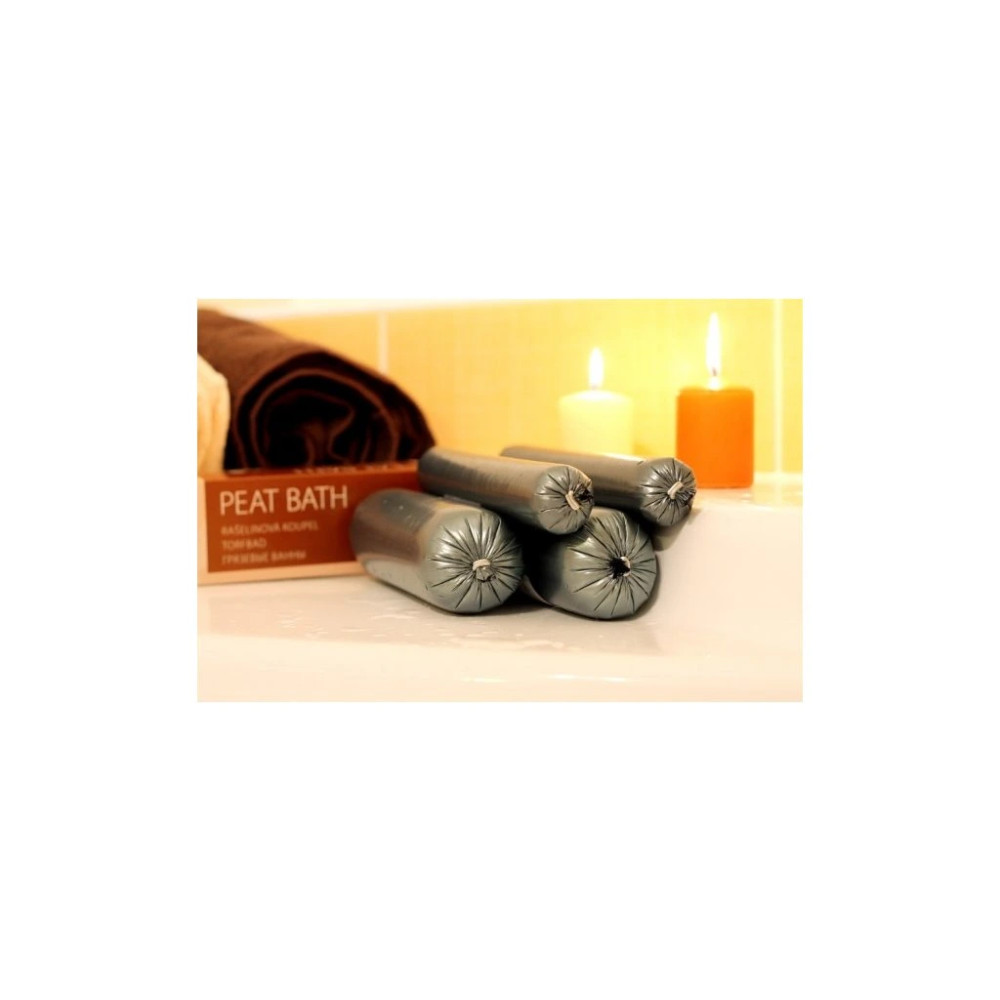 Plastový rukávec (salám) rozstřihneme u kovové spony a obsah (1 litr jemně namleté rašeliny) vytlačíme do připravené vodní lázně. Teplota lázně by měla být 36 – 37°C. Rozmělněním obsahu plastového rukávce vytvoříme plnohodnotnou rašelinovou koupel. Pro dosažení požadovaného efektu musí koupel trvat minimálně 15 minut.