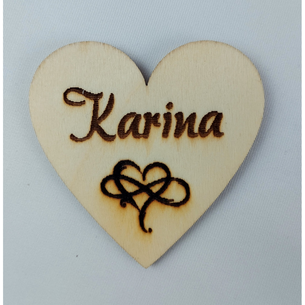 Magnetka - dřevěné gravírované srdce se jménem.