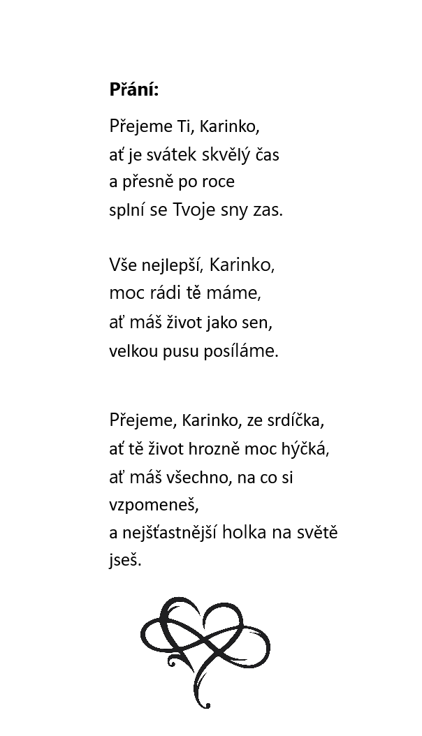 Srdce Karina - svátek 2.ledna