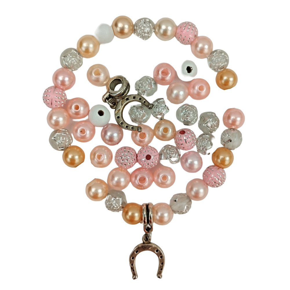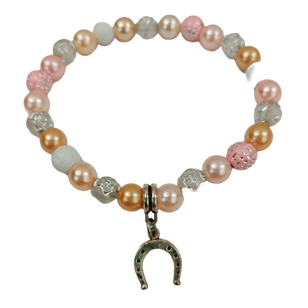 růžový náramek s přívěškem podkovy - symbolem štěstím
