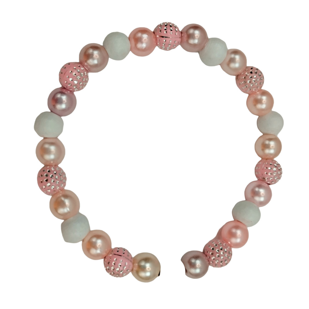 Krása v jemných pastelových barvách růžové a stříbřité v kombinaci s tvůrčí kreativitou, to je elegantní náramek ,,Jitro".