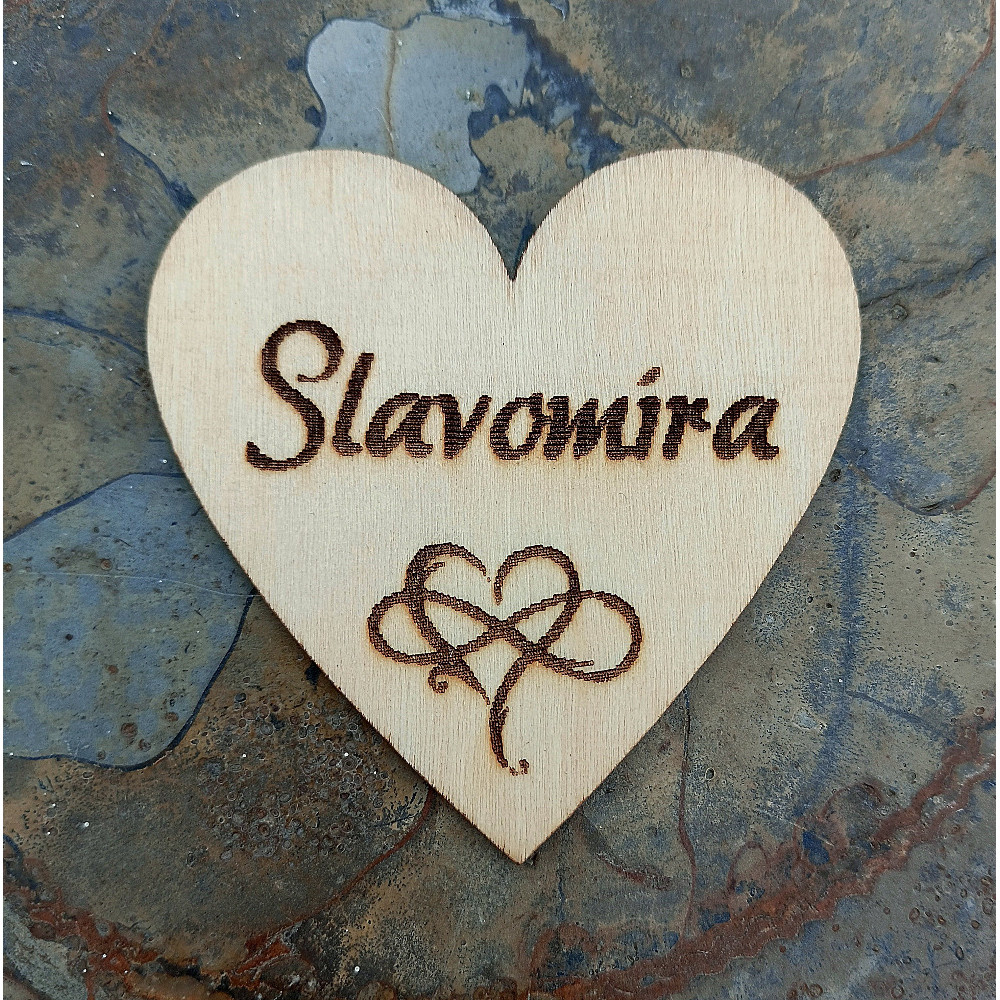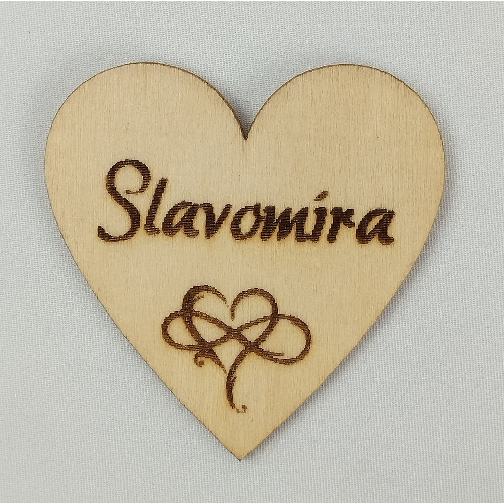Magnetka - dřevěné gravírované srdce se jménem.