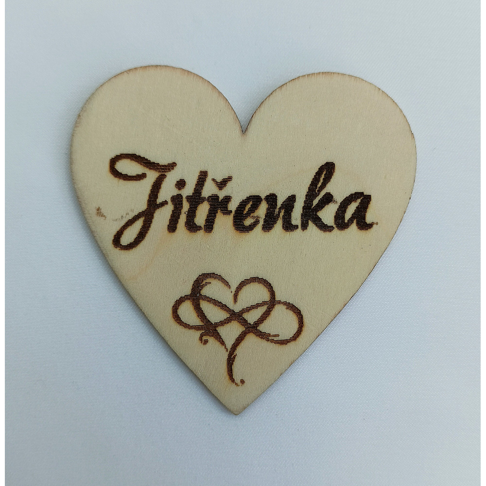 Magnetka - dřevěné gravírované srdce se jménem.