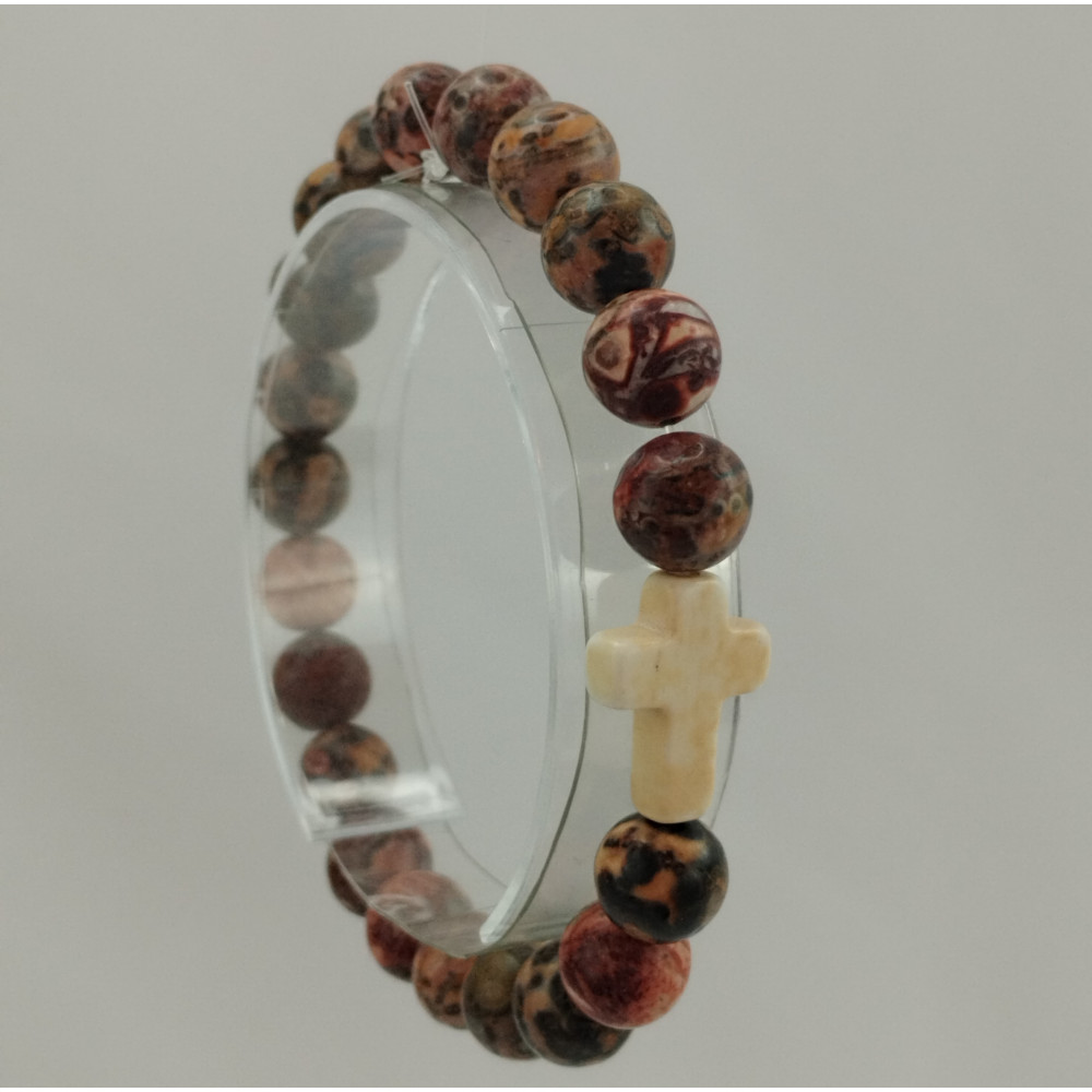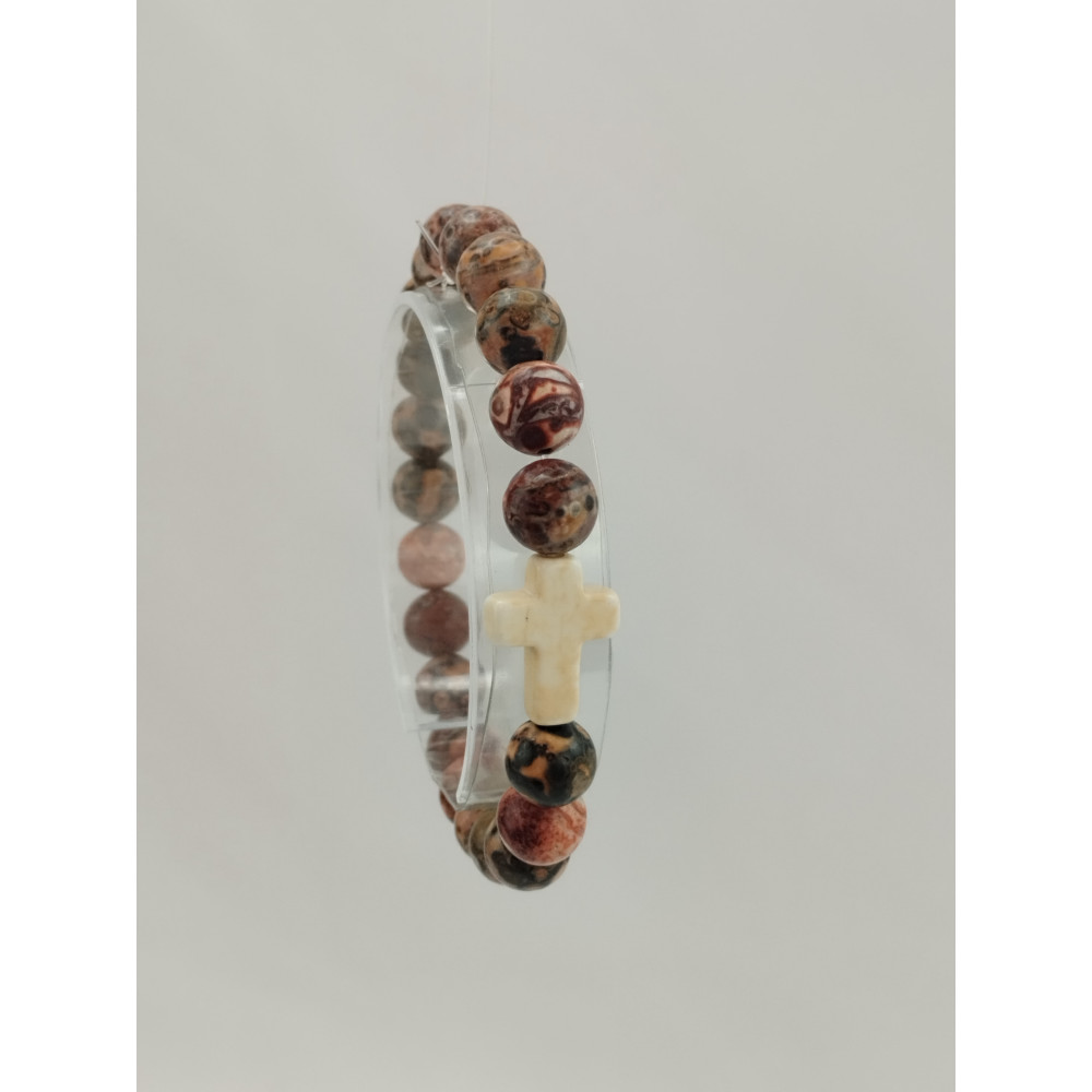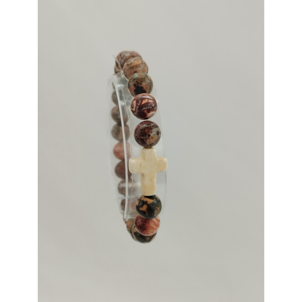 Náramek z přírodního kamene s křížkem.