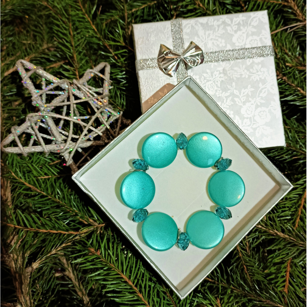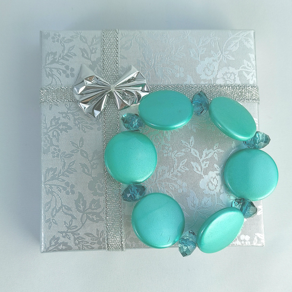 Představujeme Vám nádherný náramek v tyrkysové barvě, který je dokonalým doplňkem pro každou příležitost. Tento náramek je sestaven z pečlivě vybraných korálků, které jsou navlečeny na pružném vlákně, což zajišťuje pohodlné nošení pro každou velikost zápěstí.