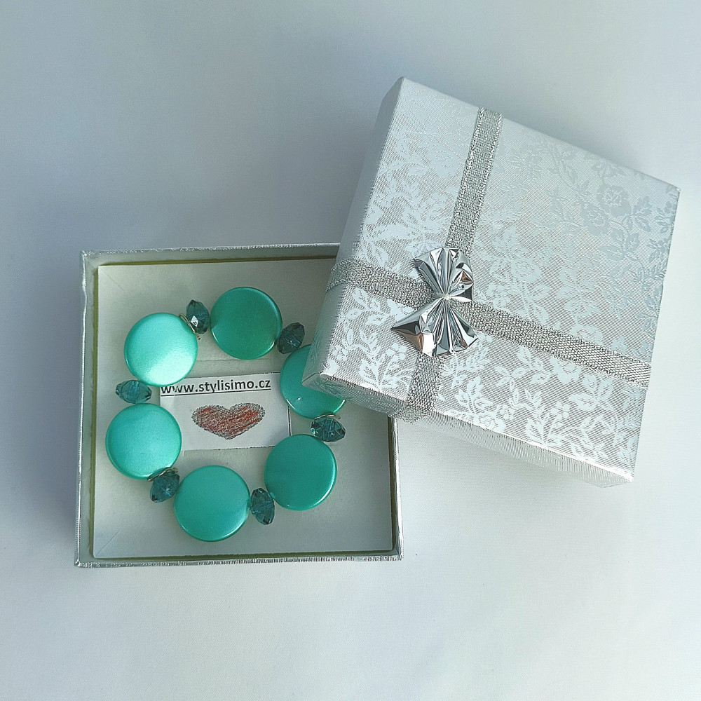 Náramek z korálků. Korálky jsou navlečeny na pružence. K náramku získáte stříbrnou dárkovou krabičku a navíc zdarma dárkovou kartičku, kam sami ručně napíšete svůj osobní vzkaz.