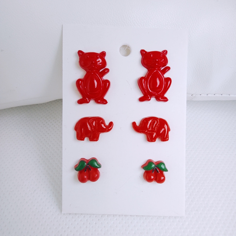 Představte si, jak vaše malá princezna otevírá dárkovou krabičku a v ní najde nejen jedny, ale rovnou tři párky nádherných náušniček, které rozjasní její oči stejně jako její outfit. Naše exkluzivní sada 3 párů dětských červených náušnic na kartonové kartě je přesně tím kouzelným dárkem, který hledáte. Každý pár náušnic má svůj jedinečný tvar - roztomilou kočičku, milého sloníka a sladké třešničky, které jsou navrženy tak, aby přinesly radost a úsměv na tvář vaší malé princezny.