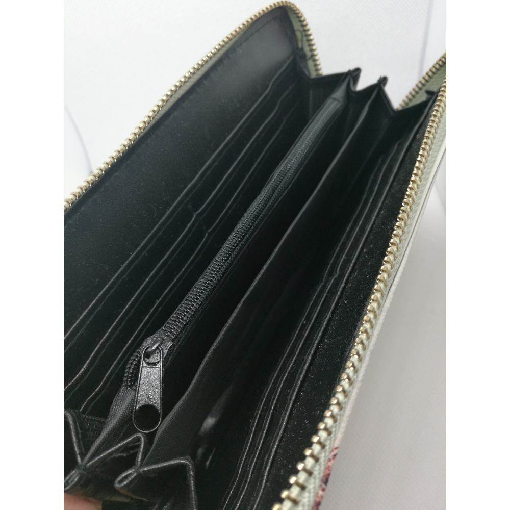 Peněženka Paris, obsahuje přihrádky na karty a kapsu na zip na drobné mince. Vnitřek peněženky černé barvy. Do peněženky se vejde i většina chytrých telefonů.