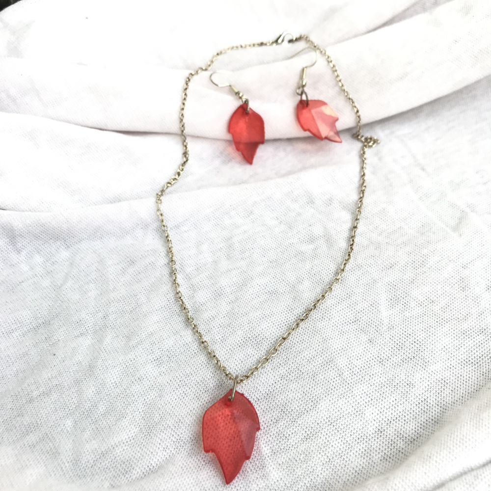 Aby sada byla kompletní, nelze opomenout visací náušnice, které jsou dokonalým doplňkem k řetízku. Tyto náušnice, rovněž inspirované listy, se při každém pohybu jemně chvějí a odleskují červené tóny, které přitahují zraky okolních. Jejich design je sofistikovaný, a přesto přirozený, což je činí ideálním doplňkem pro každou příležitost, ať už se chystáte na večerní procházku městem nebo na slavnostní večer.