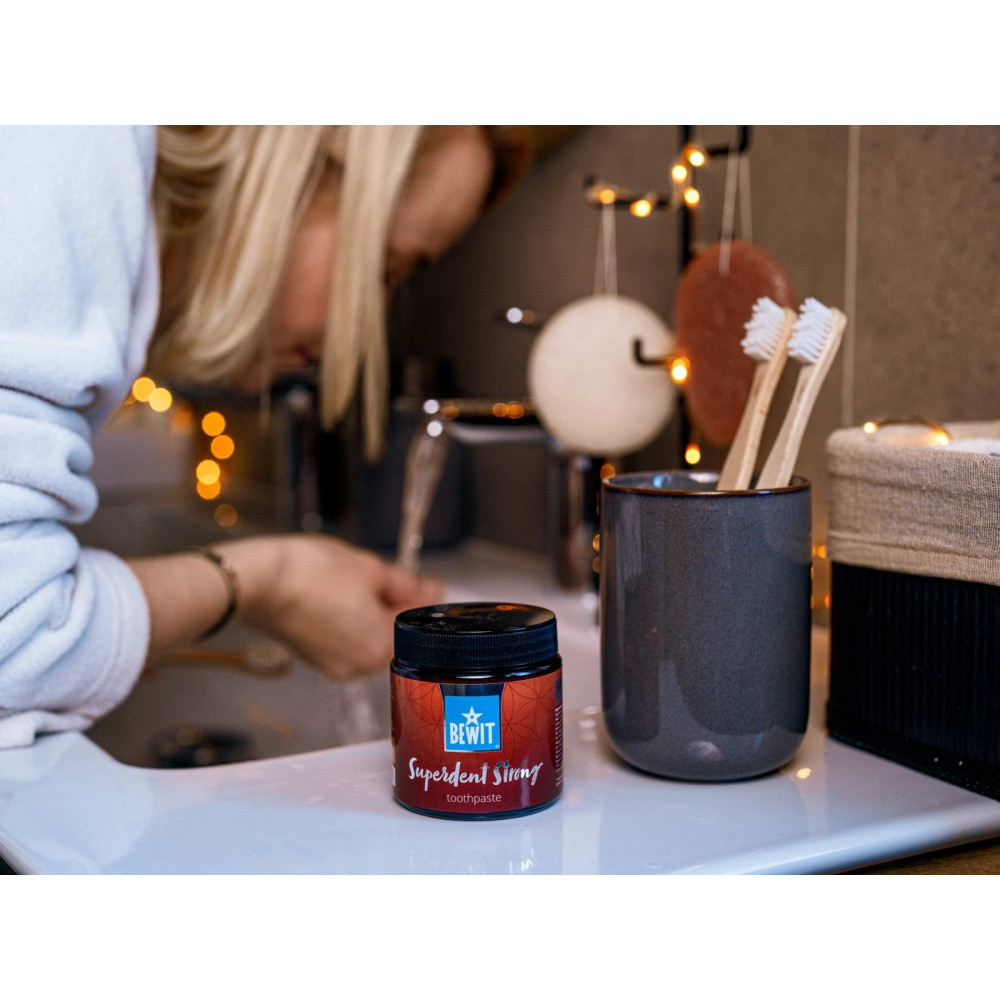 Objevte mimořádné čistící účinky naší extra silné zubní pasty s vysokým zastoupením osvěžujících esenciálních olejů.