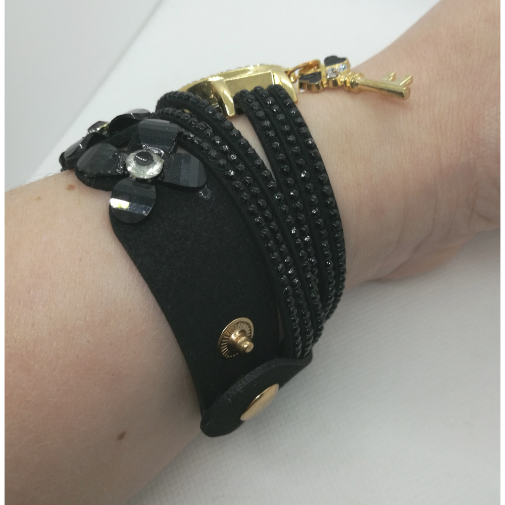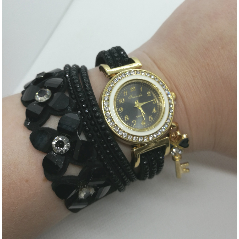 Damenuhr schwarz, für doppelte Umschlingung des Armes, Armbandoptik